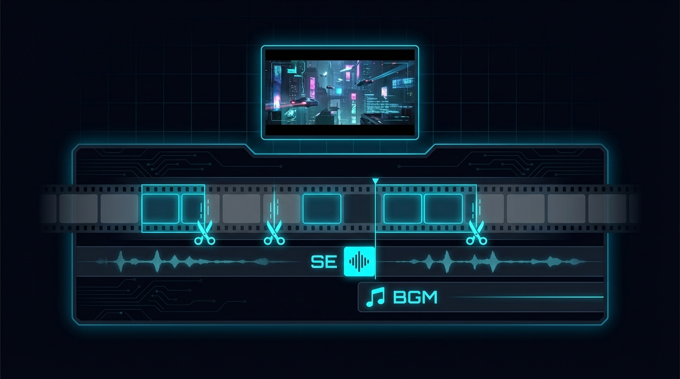 - 不要部分のカット: 素材の前後の余分な部分を削る。間延びした箇所もカットする
