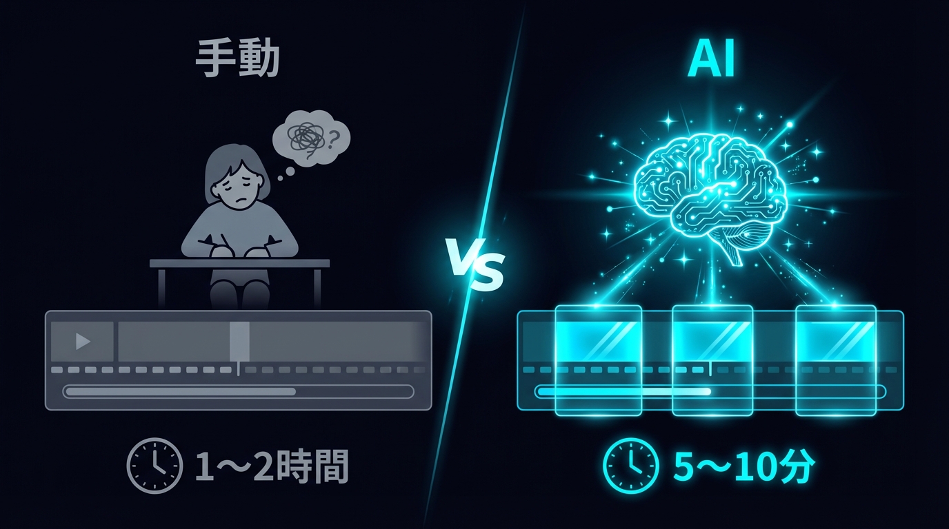 | ハイライト探し | 1〜2時間 | 5〜10分(自動検出 → 確認) | 90%削減 |