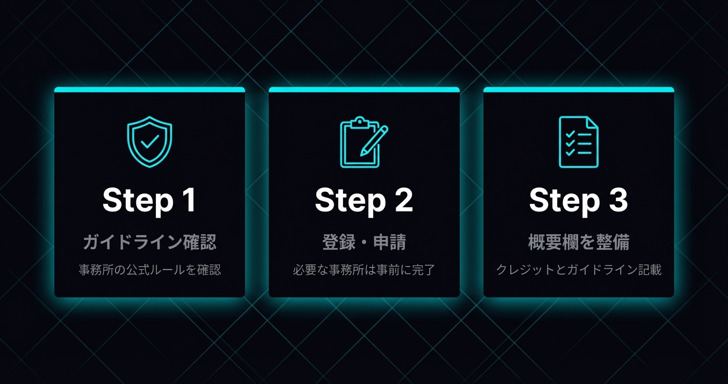 - ガイドラインの更新を定期的に確認する — 事務所のルールは予告なく変更されることがあります